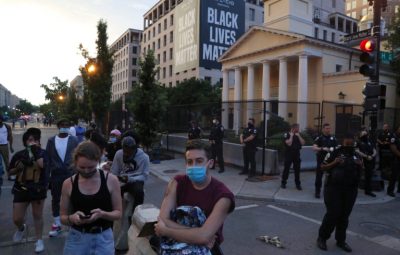 Police guard outside St. John’s Episcopal Church while protesters take part in an anti-police brutality march at the Black Lives Matter Plaza, as racial inequality protests continue in Washington, U.S., June 25, 2020. REUTERS/Leah Millis – RC2OGH9ET8U3