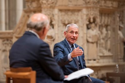 Previous Image Next Image webRNS-Fauci-11132020 Dr. Fauci speaks with a group of people at the Ignatius Forum at the Washington National Cathedral. Photo courtesy Danielle E. Thomas/Washington National Cathedral